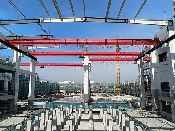 橋式起重機是橫架于車間、倉庫和料場上空進行物料吊運的起重設備。由于它的兩端坐落在高大的水泥柱或者金屬支架上,形狀似橋。橋式起重機的橋架沿鋪設在兩側高架上的軌道縱向運行,可以充分利用橋架下面的空間吊運物料,不受地面設備的阻礙。它是使用范圍最廣、數量最多的一種起重機械。